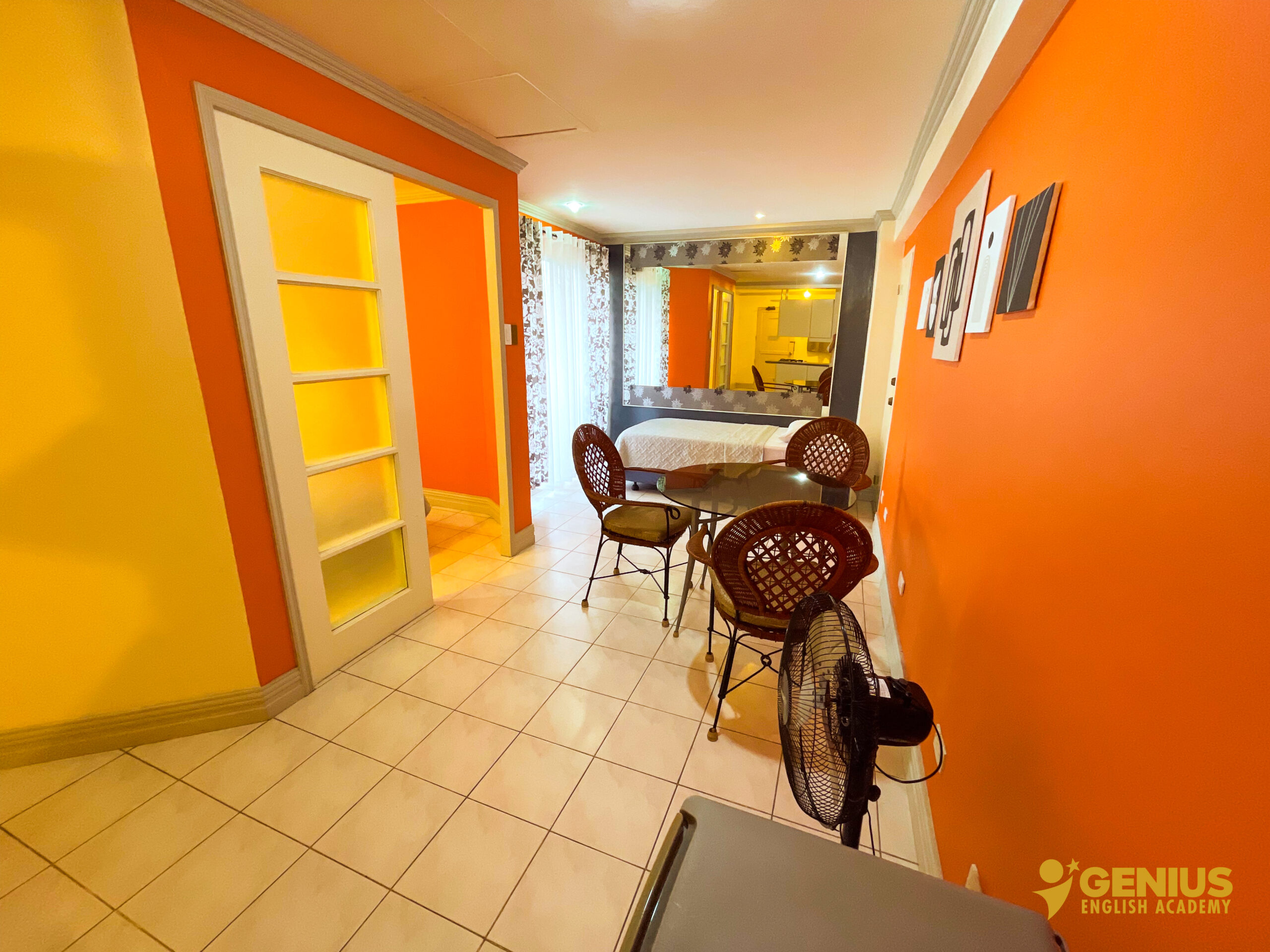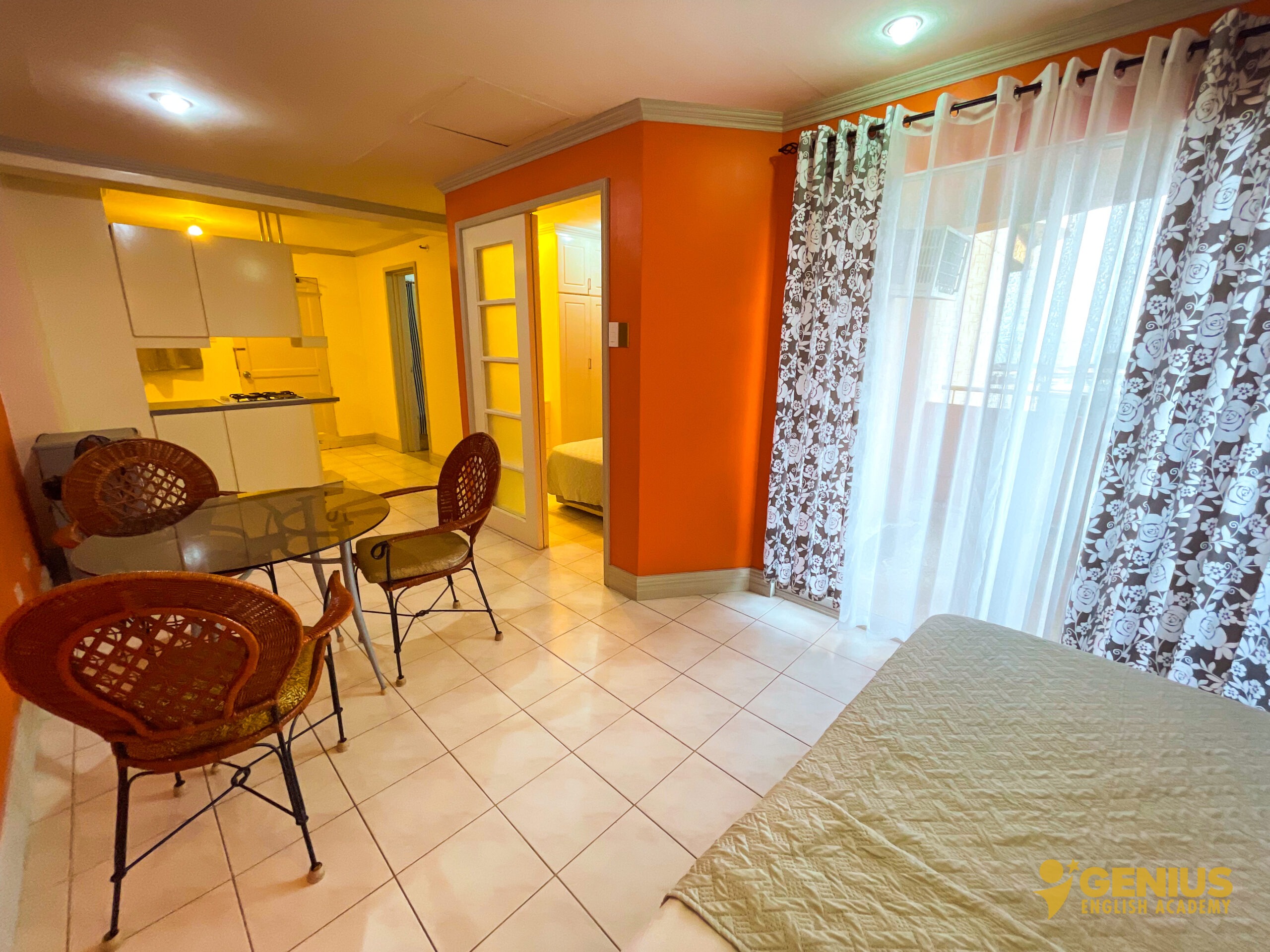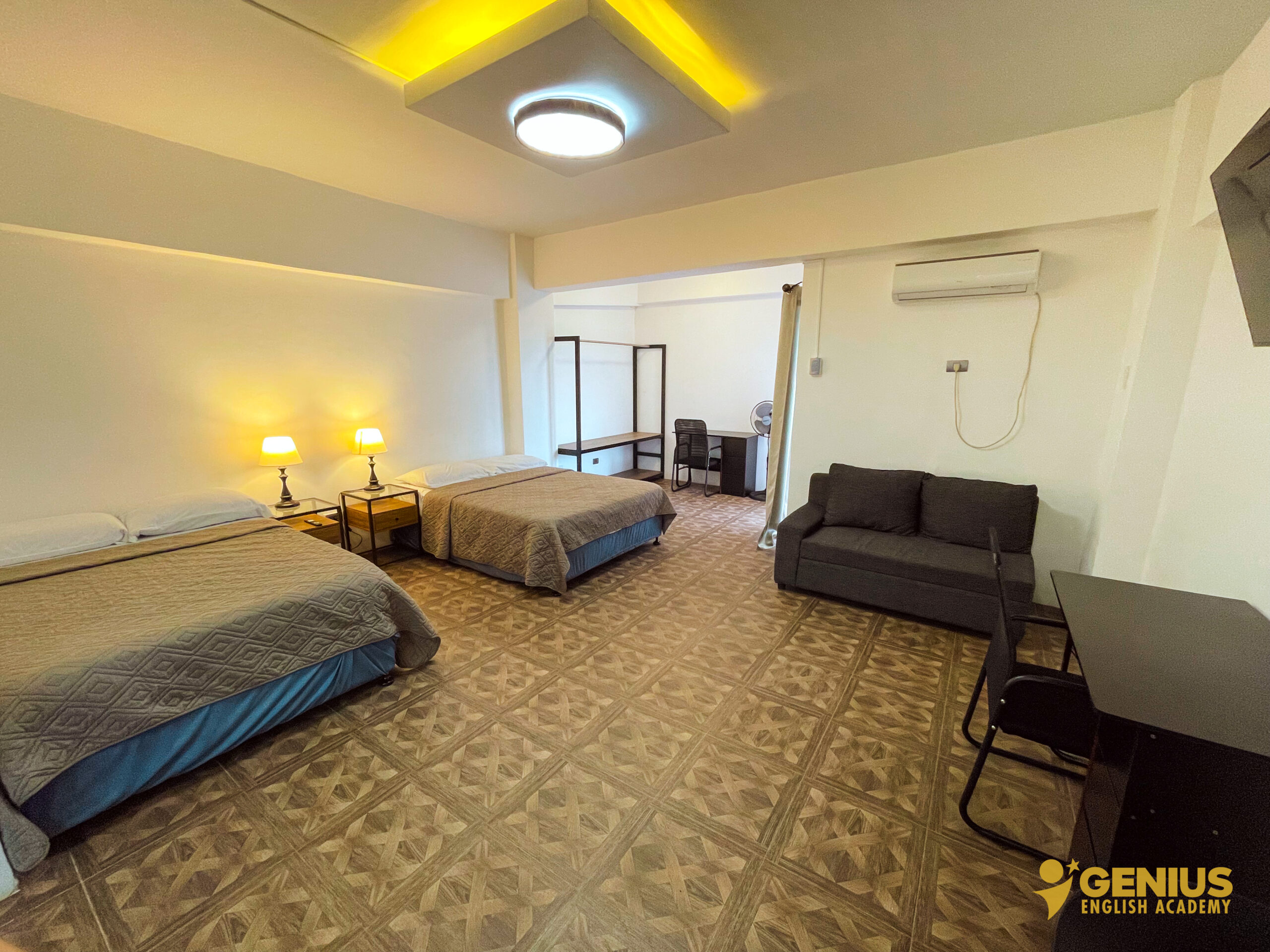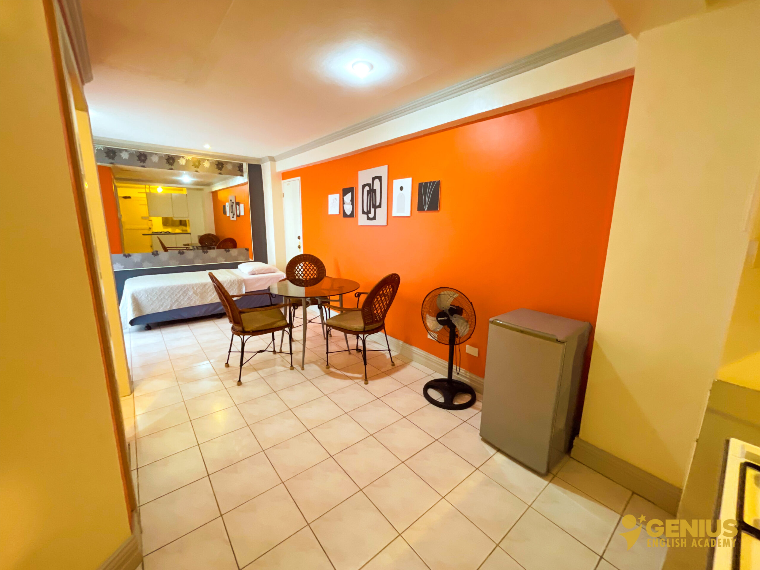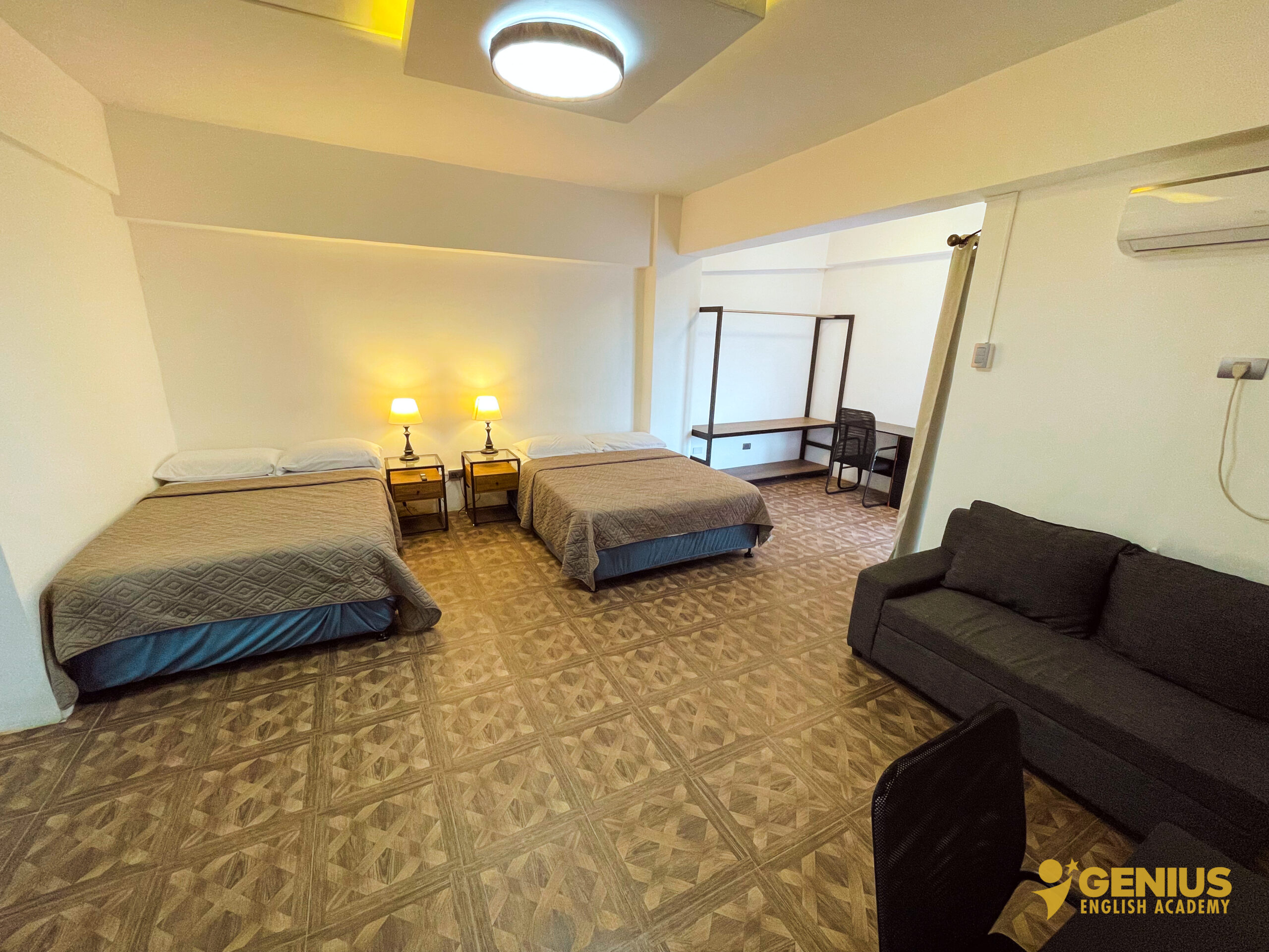 Our rooms at Genius English Academy are thoughtfully designed to provide both comfort and independence. Each room is equipped with a private kitchen, refrigerator, air conditioning, Wi-Fi, and a spacious balcony for relaxation. Enjoy the convenience of a hot and cold shower, with kettles and safety boxes available upon request. Unlimited access to clean drinking water ensures you stay refreshed throughout your stay. Combining the essentials of home with the freedom of campus life, our rooms are perfect for students and families seeking a cozy and convenient living space.
