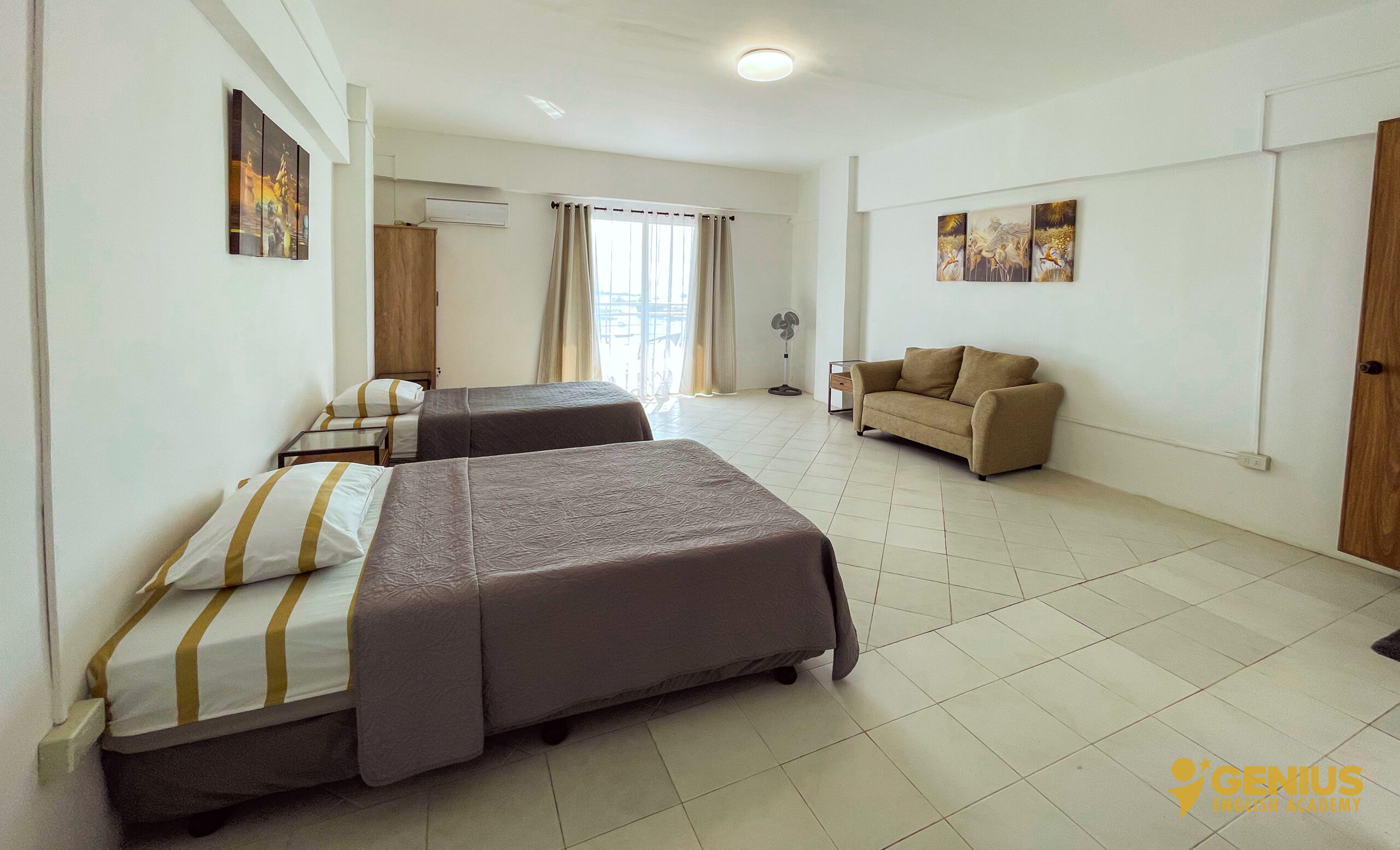 Our room categories at Genius English Academy are flexible and adaptable. Each spacious room can be adjusted to meet specific needs by simply adding or removing beds, allowing us to accommodate single, double, triple or family arrangements. This flexibility ensures we can easily match any group size or preference.